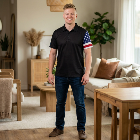 Polo Shirt with American Flag (Black), Men's Collared Casual Shirt, Patriotic