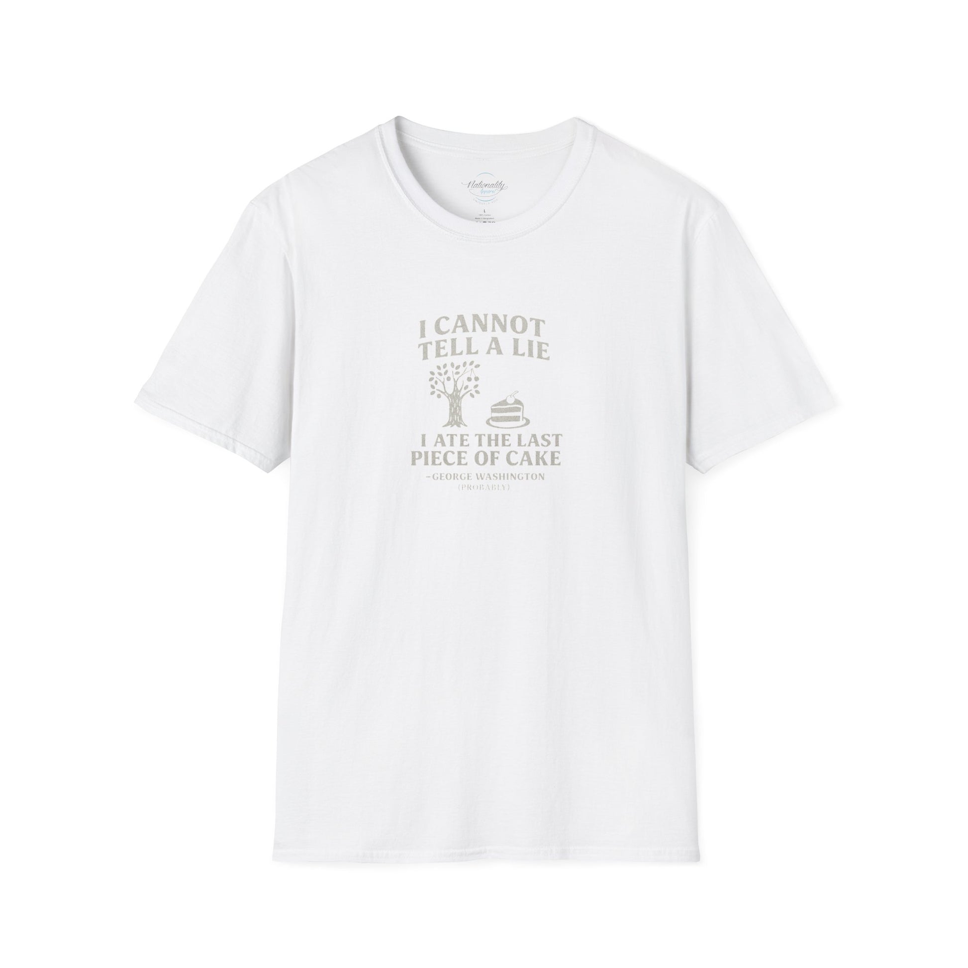 George Washington (probably) Quote T-Shirt — "I cannot tell a lie, I ate the last piece of cake" White Text Only
