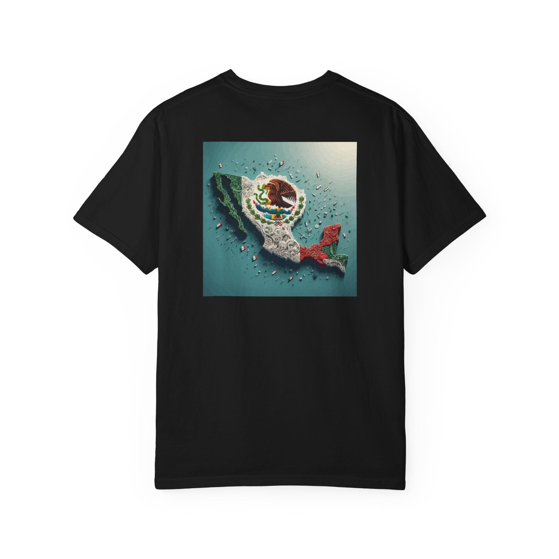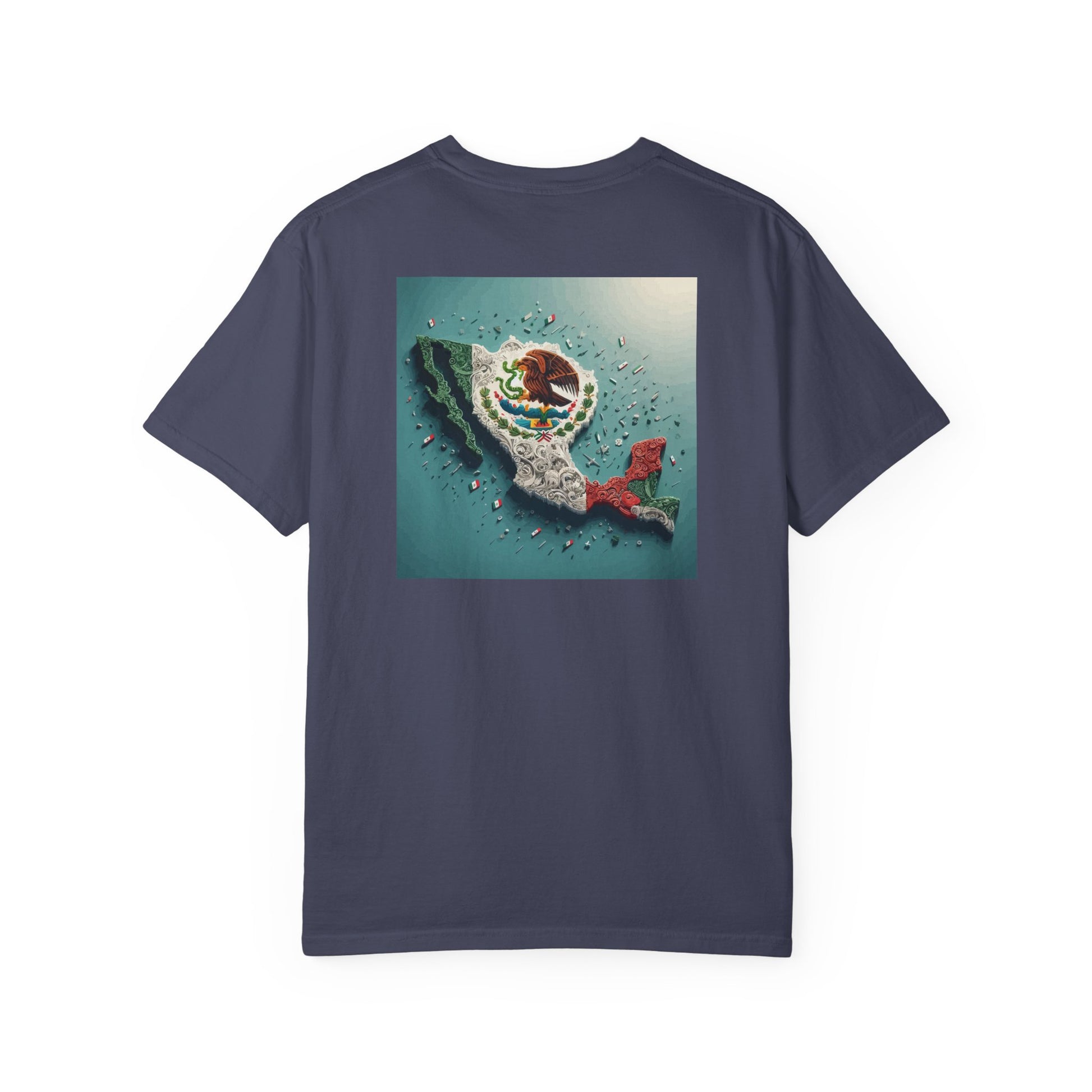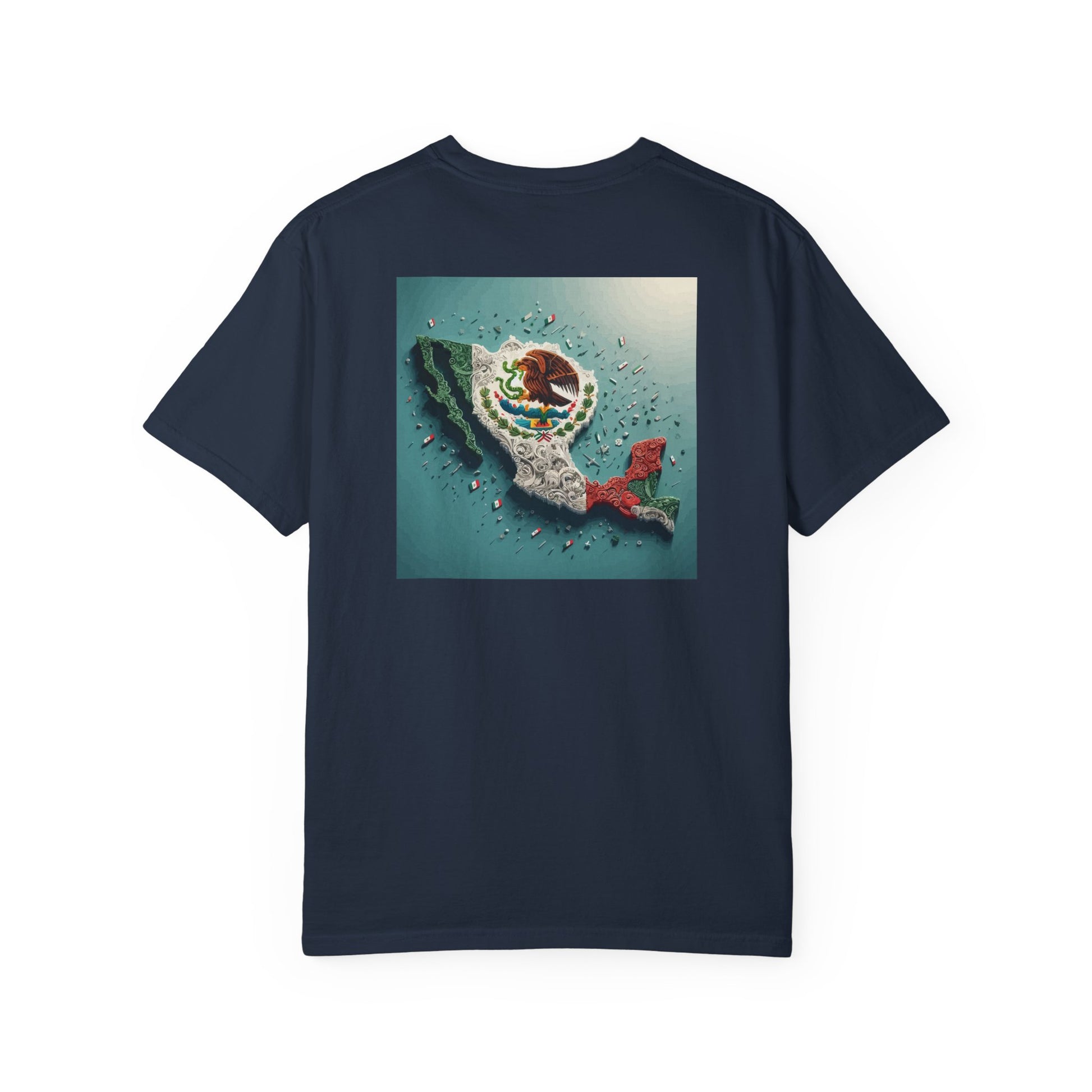 High Quality T-shirt with topography of Mexico overlaid with the Mexican flag. This tee shirt gives off a patriotic vibe, perfect for those who love Mexico and want to show their pride. Ideal for casual wear, patriotic events, Mexican holidays, and cultural celebrations. Product features - Available in multiple sizes from S to 4XL - Made with 100% ring-spun US cotton for long-lasting comfort - Features double-needle stitching for durability - Garment dyed for soft color and texture - Great fit with pre-shrunk fabric Care instructions - Machine wash: cold (max 30C or 90F) - Do not bleach - Tumble dry: low heat - Iron, steam or dry: low heat - Do not dryclean