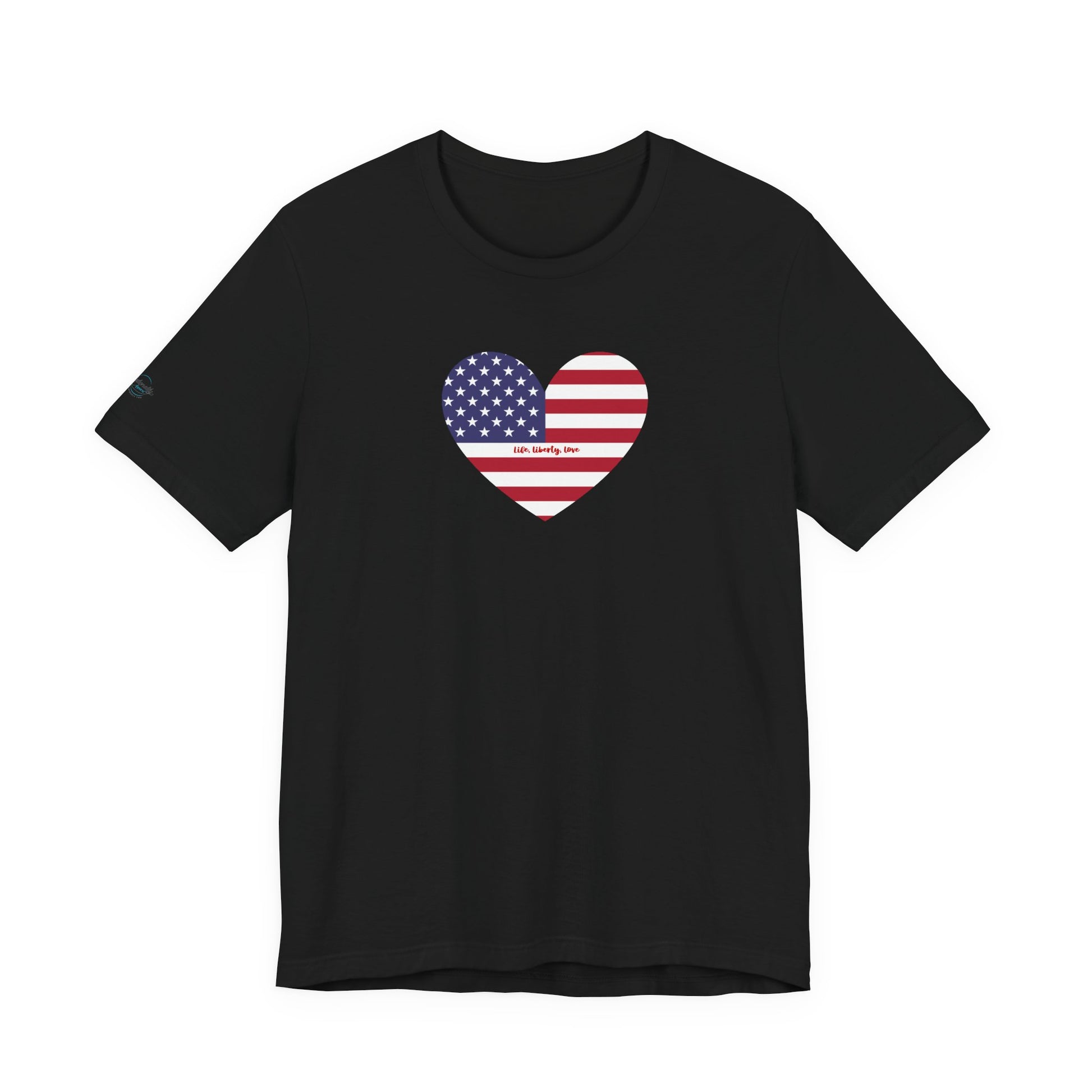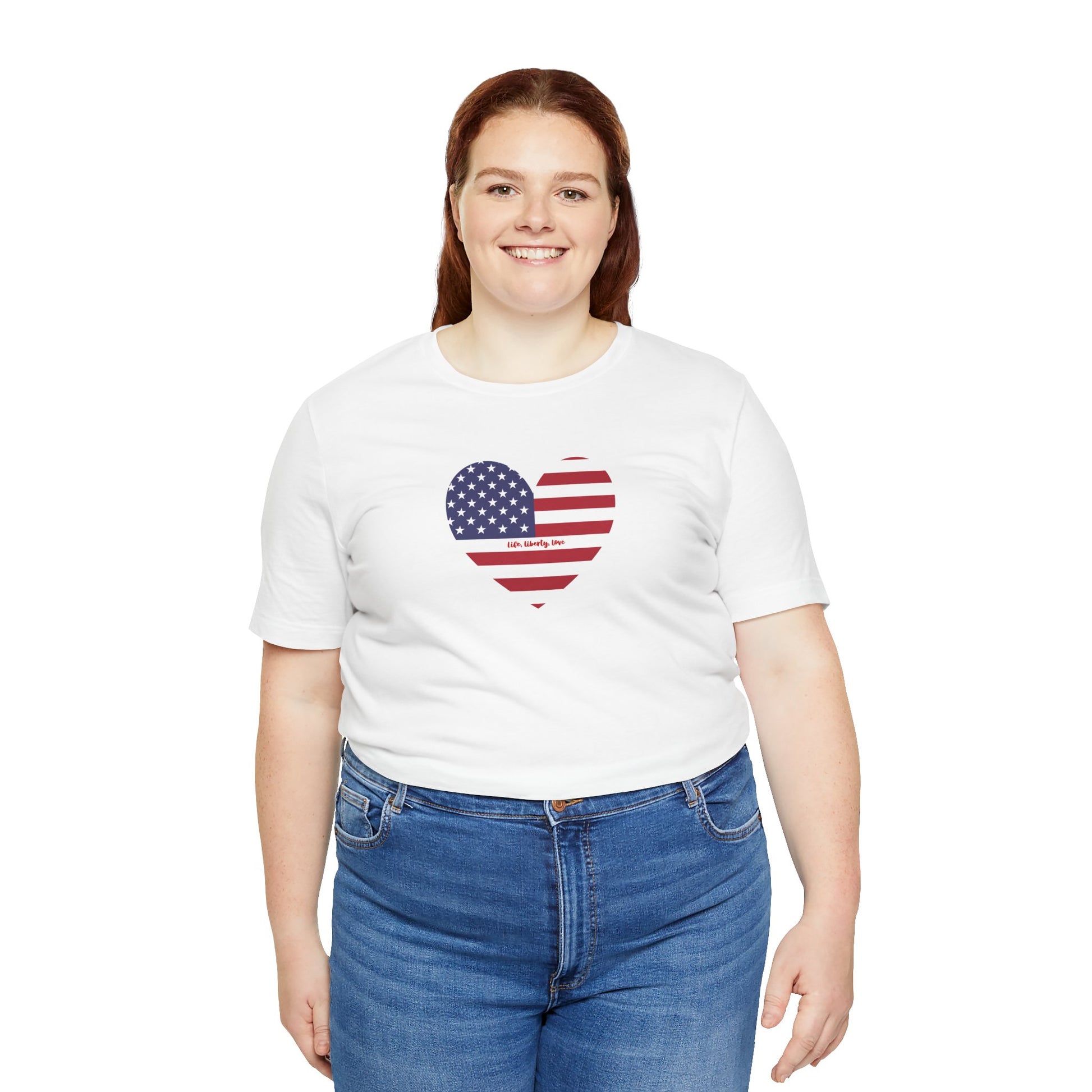 Women's American Flag with Heart Tee - Life, Liberty, Love Design